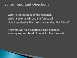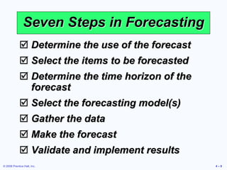 Forecasting time horizons are. Determine the time horizon of the forecast. 23 Identify the seven steps involved in forecasting.